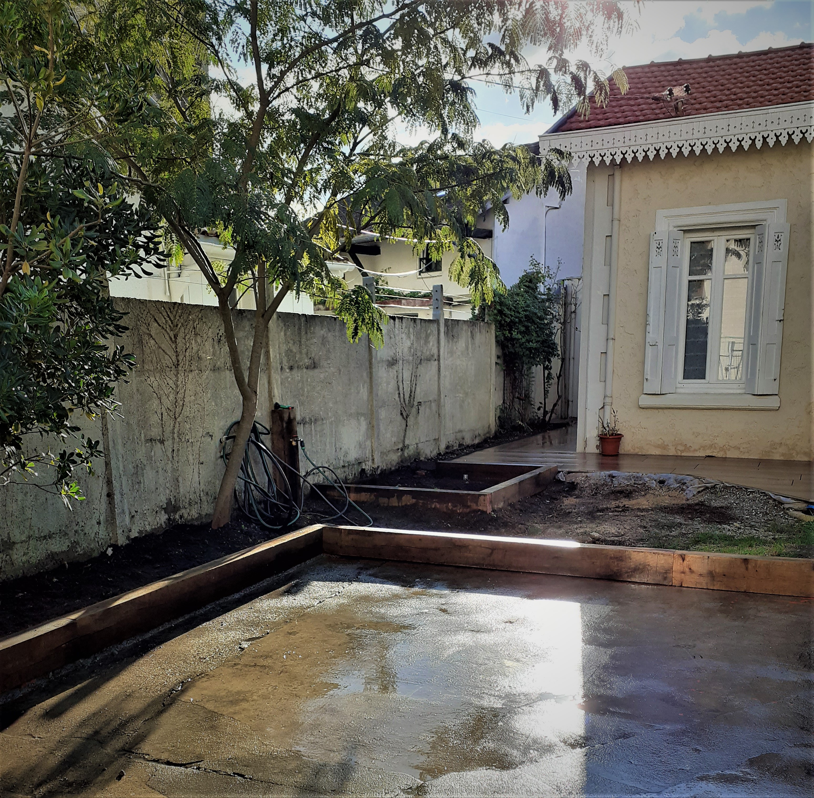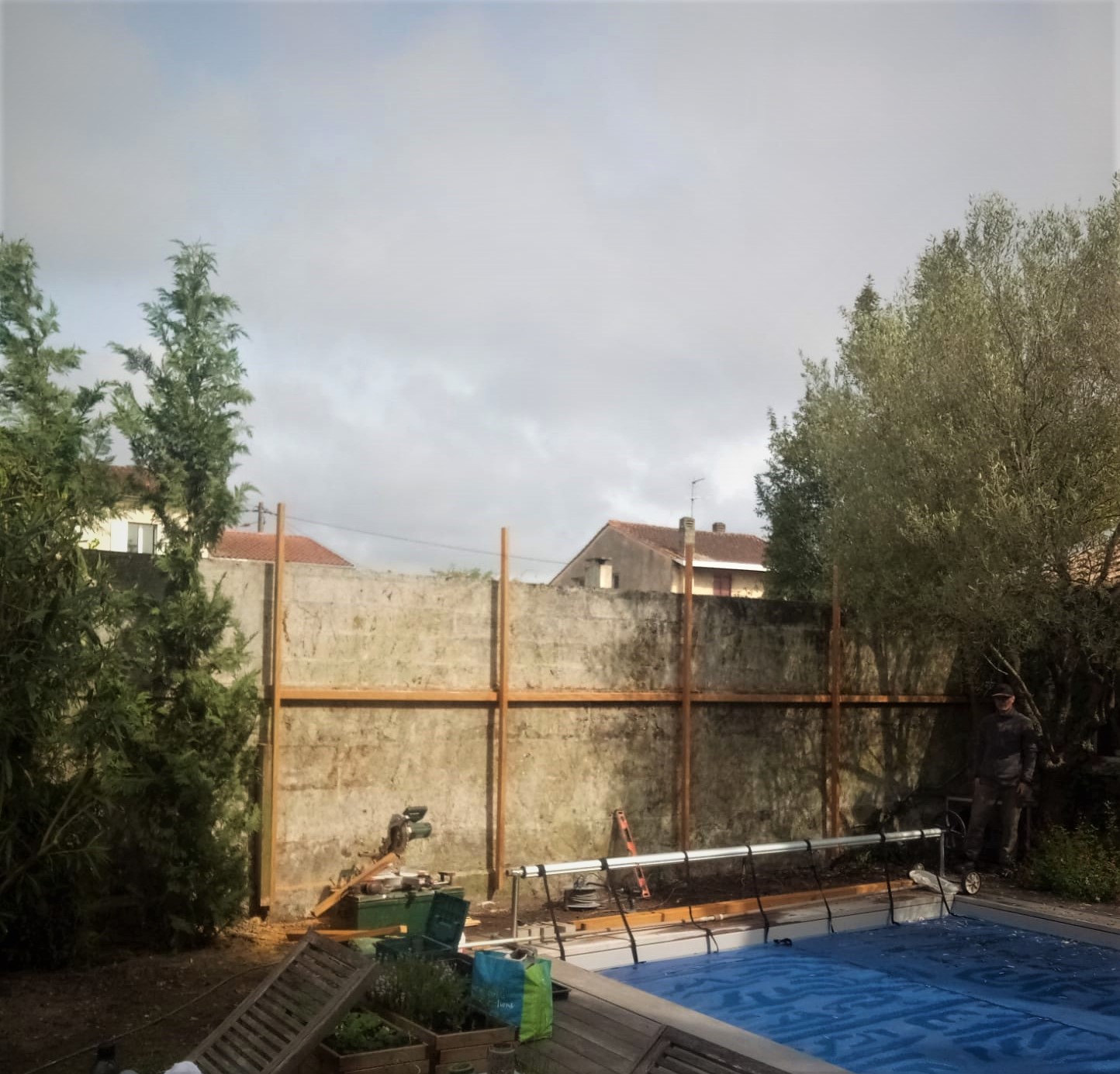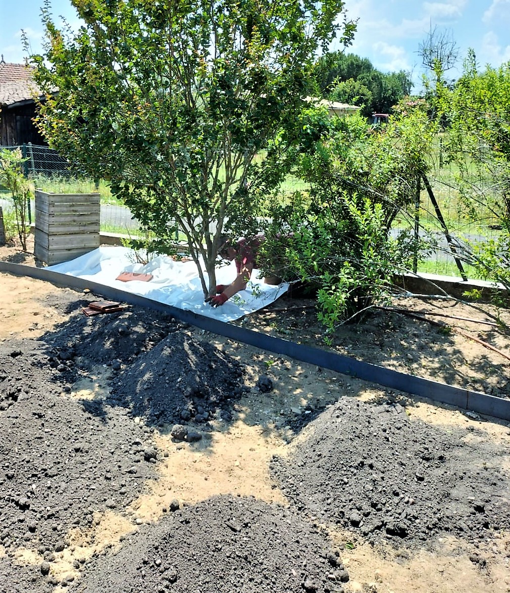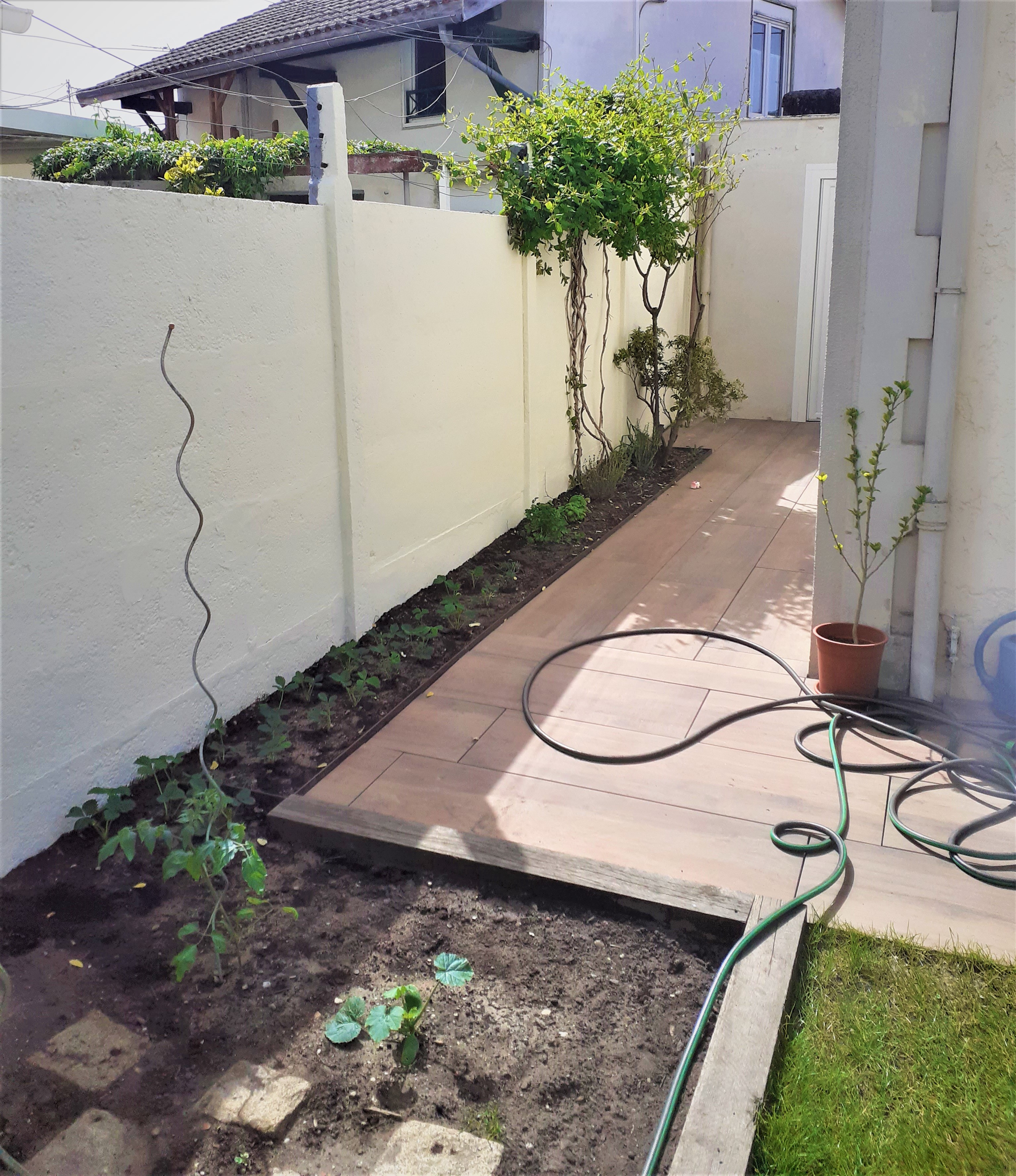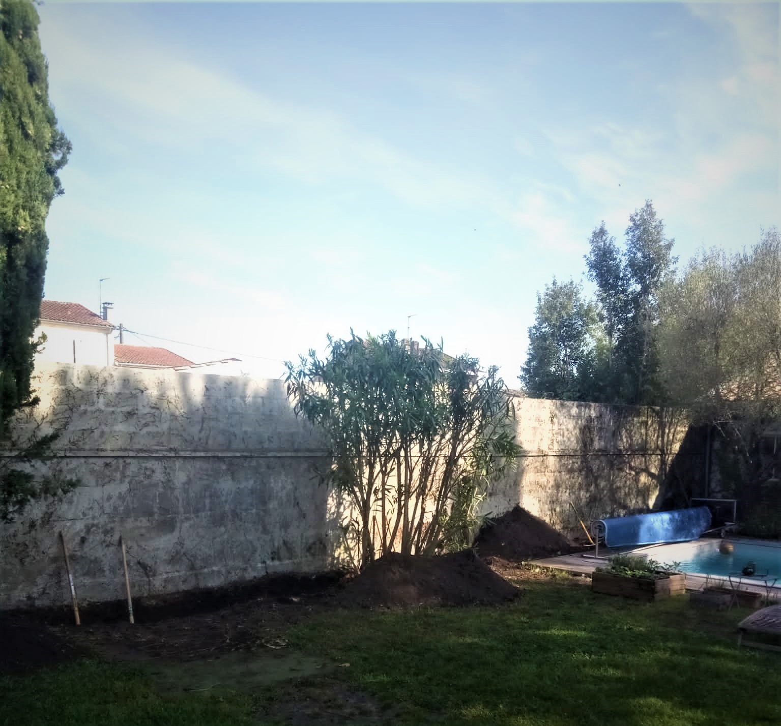 Nettoyage de l’espace, plantation de nouveaux sujets, conception d’un treillis destiné à la pousse du jasmin