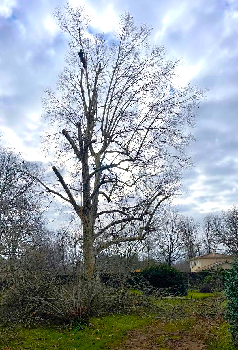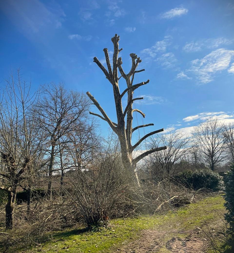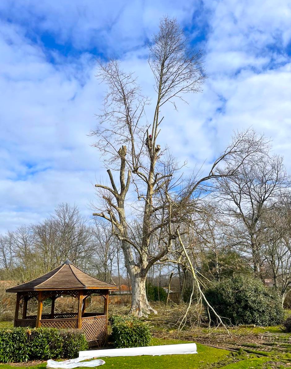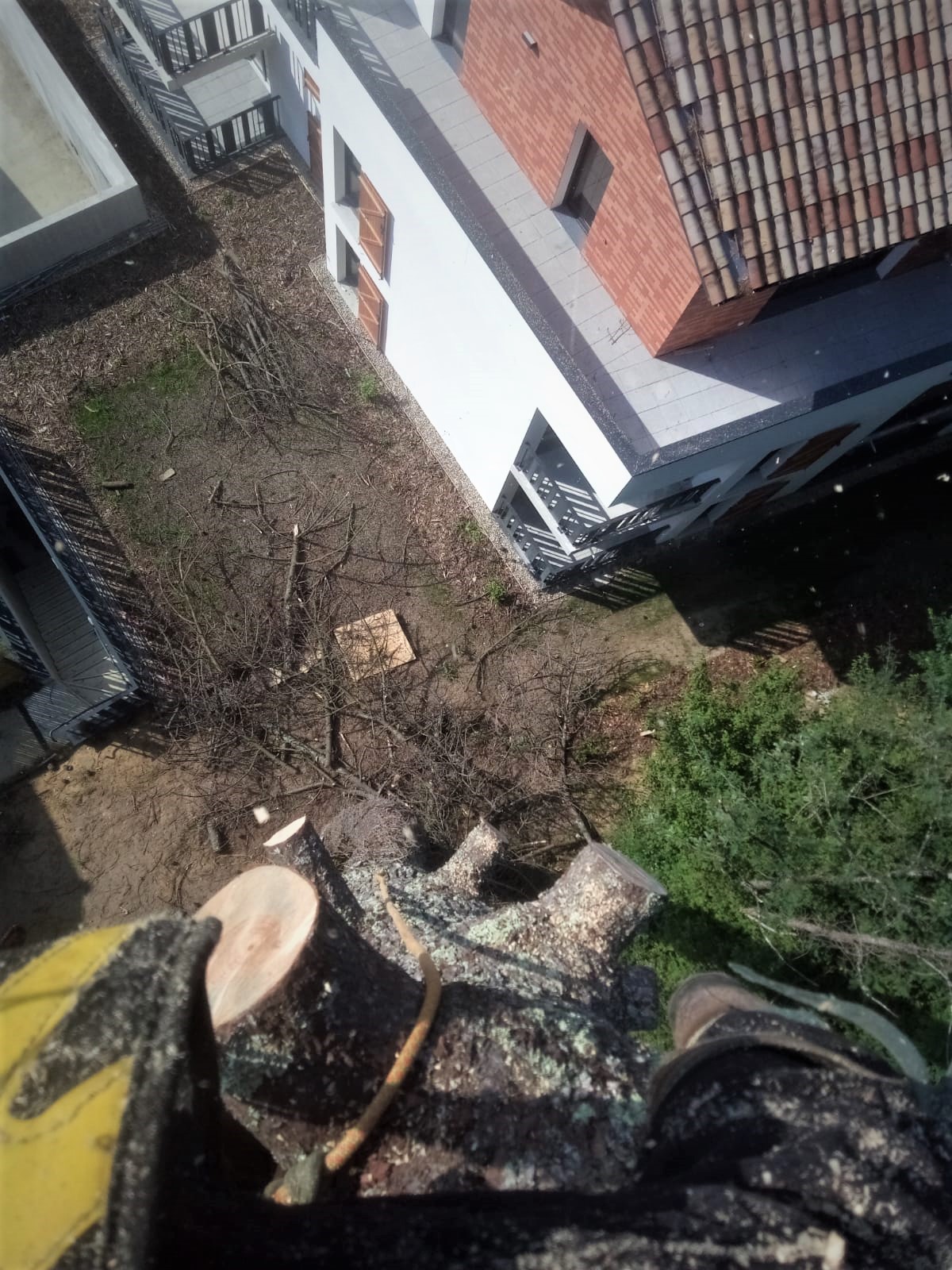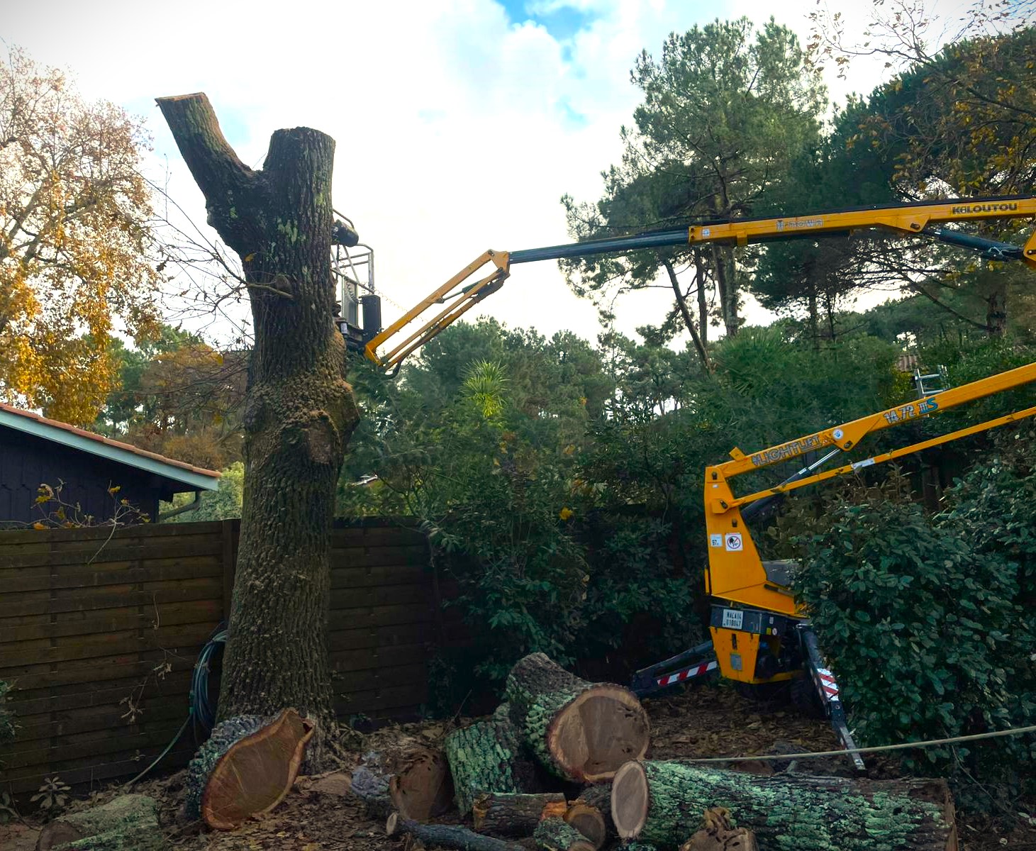 Elagage traditionnel, taille des branches puis démontage de l’arbre et évacuation des déchets