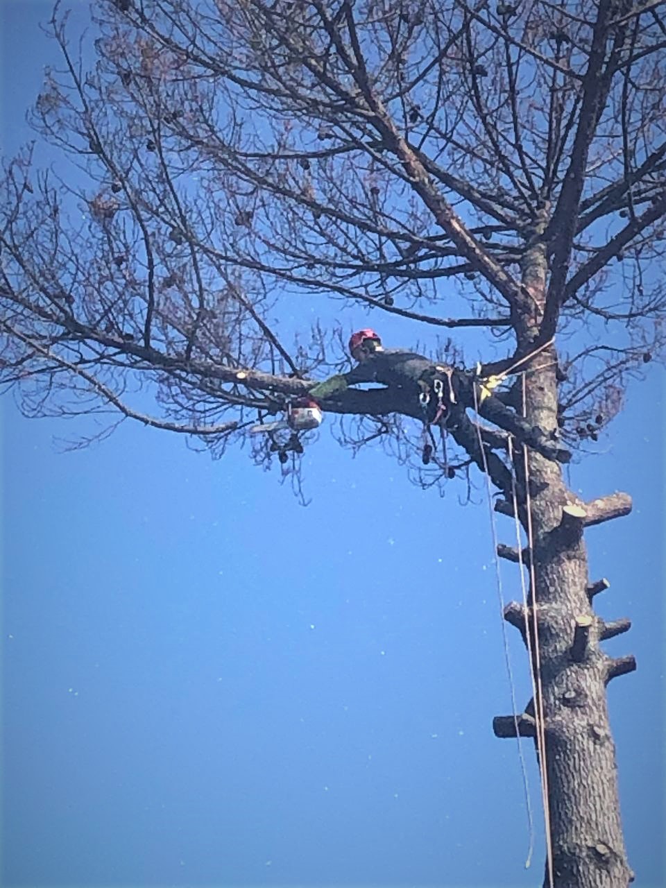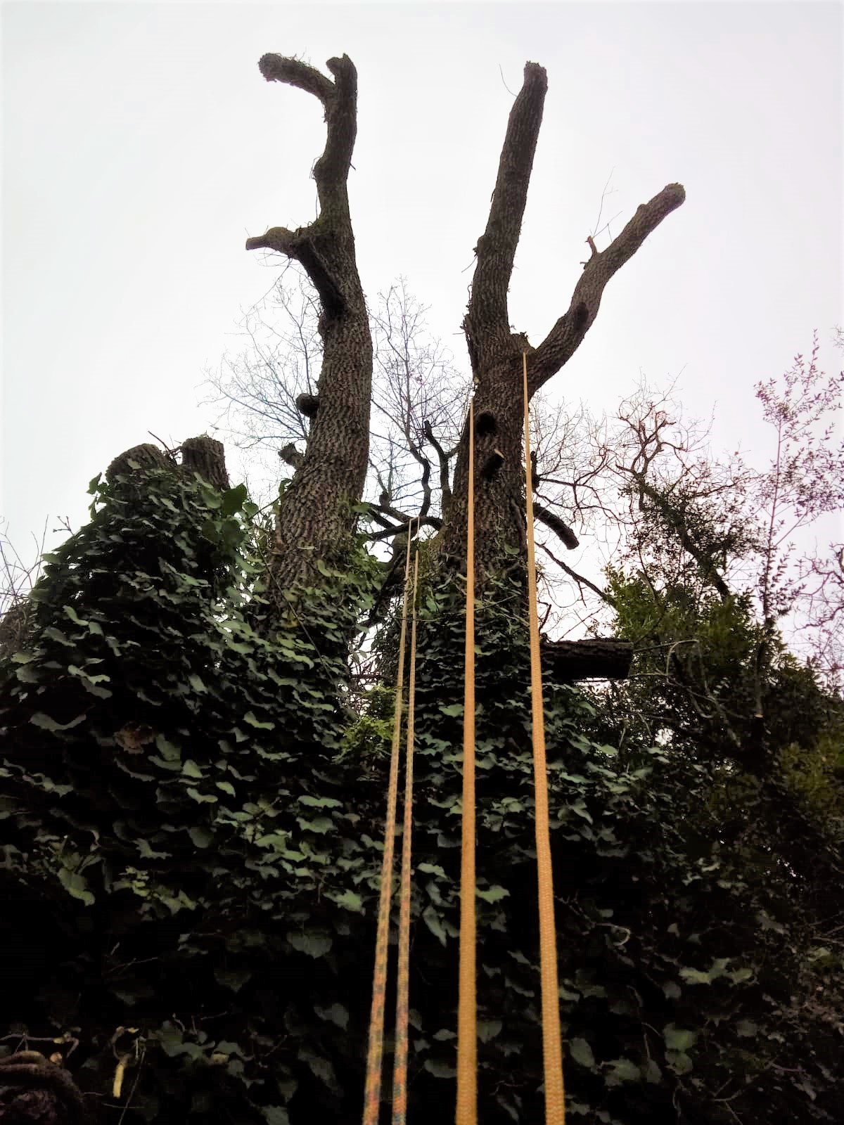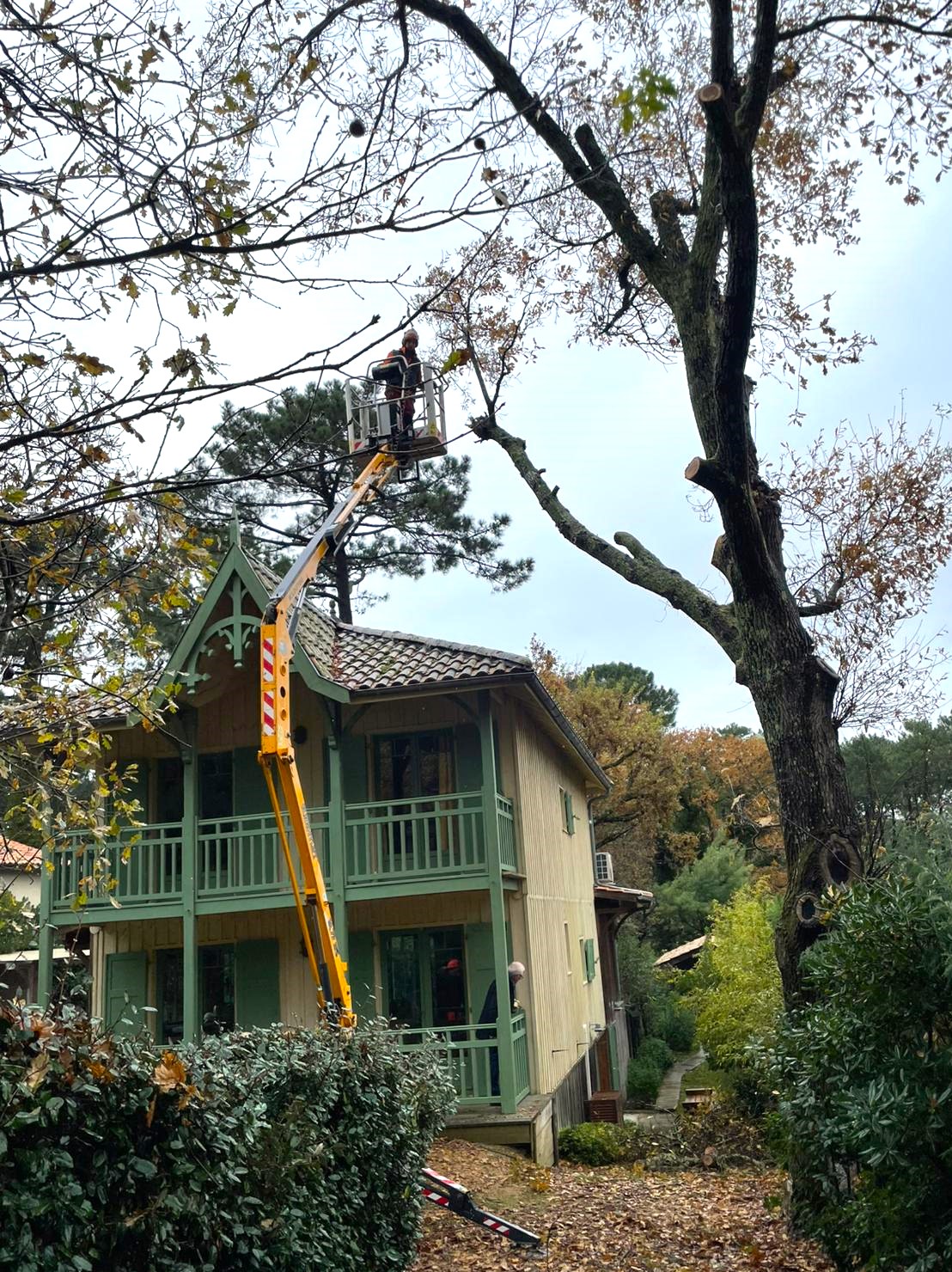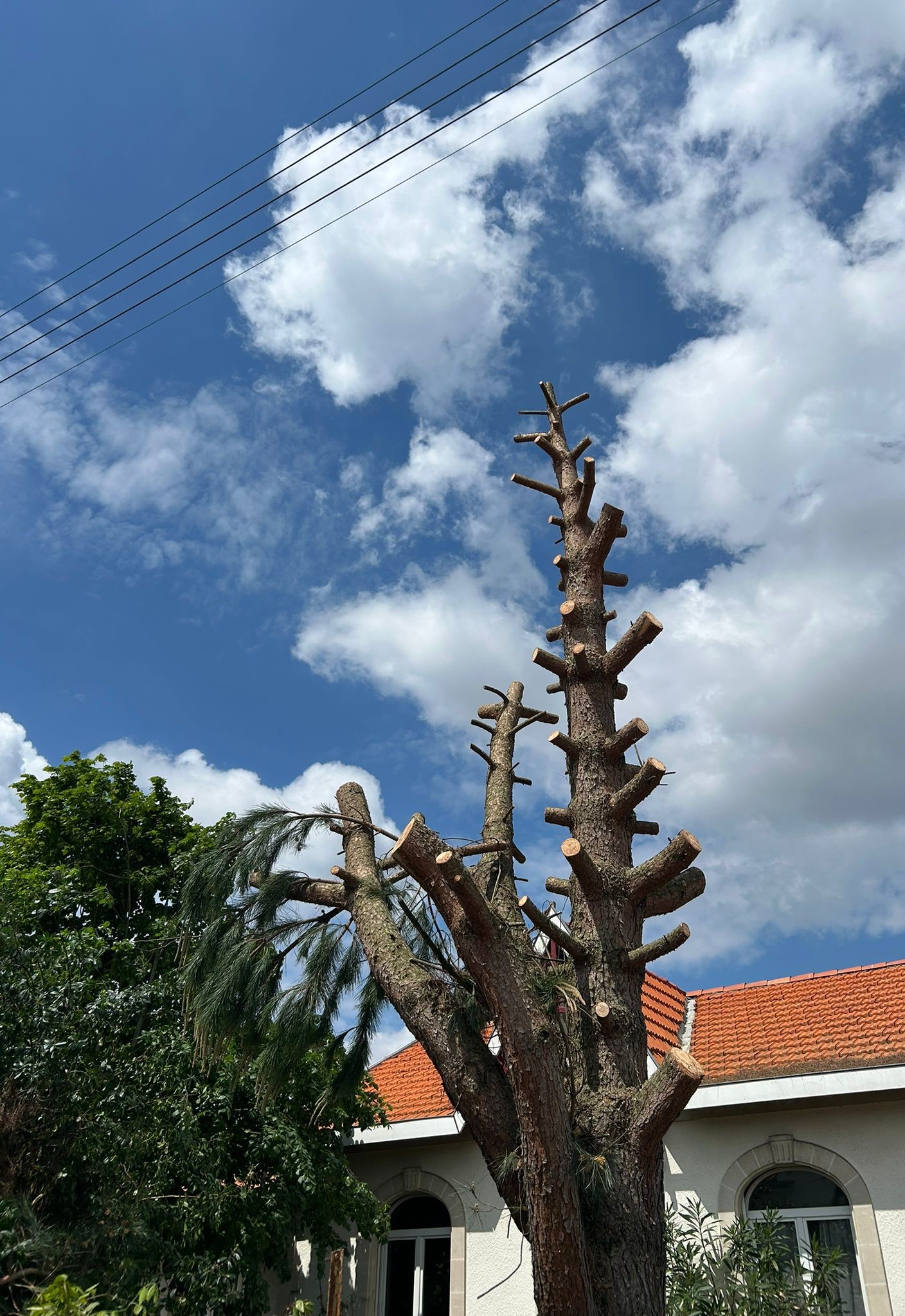 Elagage traditionnel, taille des branches puis démontage de l’arbre et évacuation des déchets
