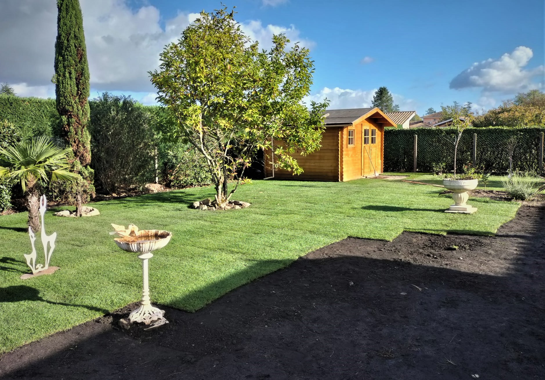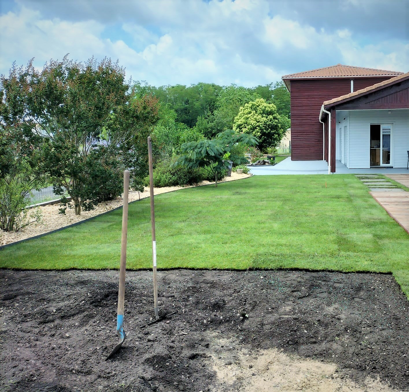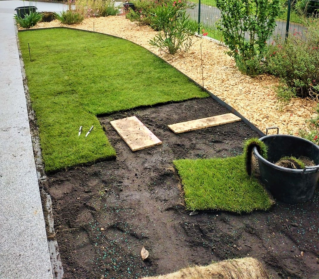 Préparation du terrain, pose de gazon, réalisation d’une allée