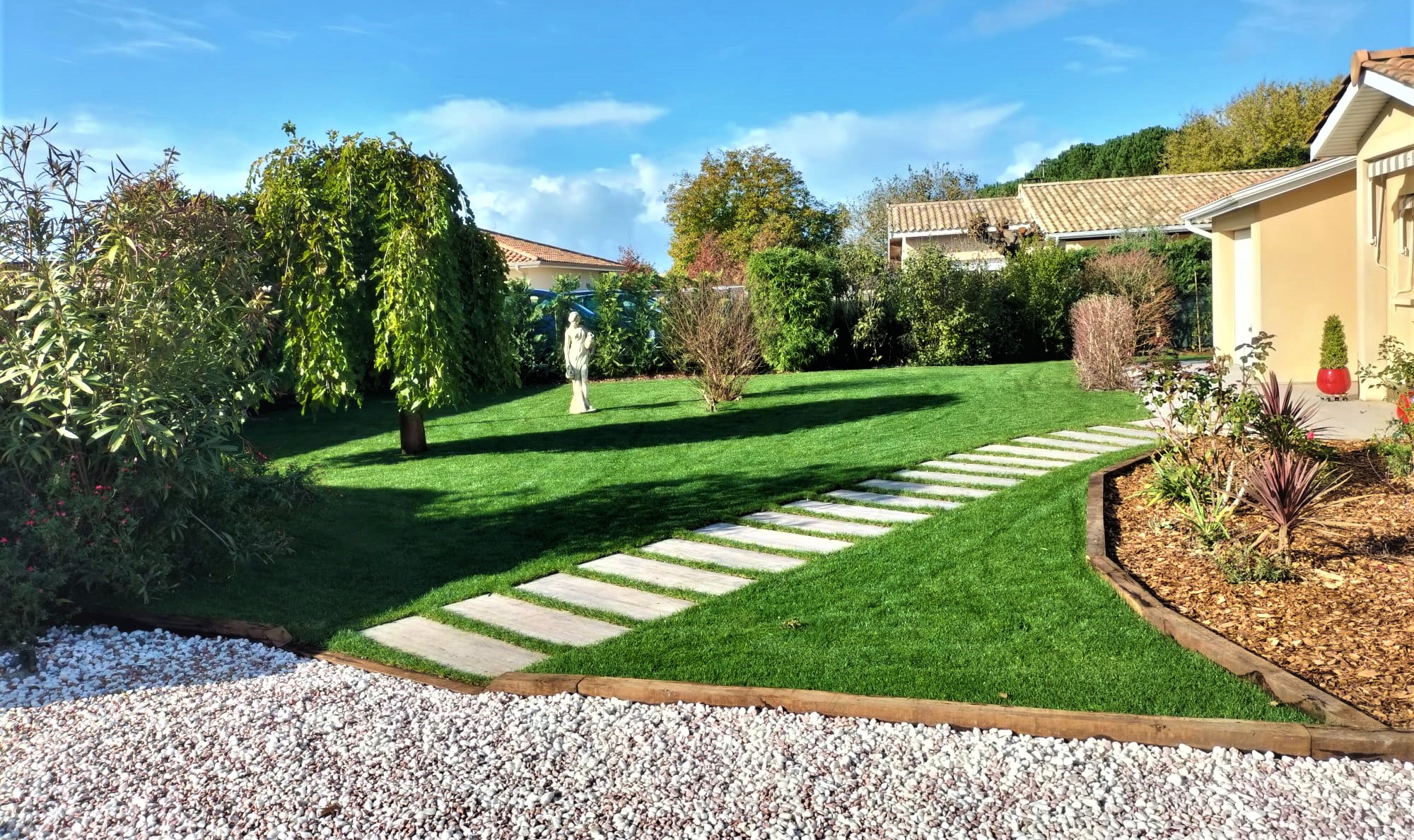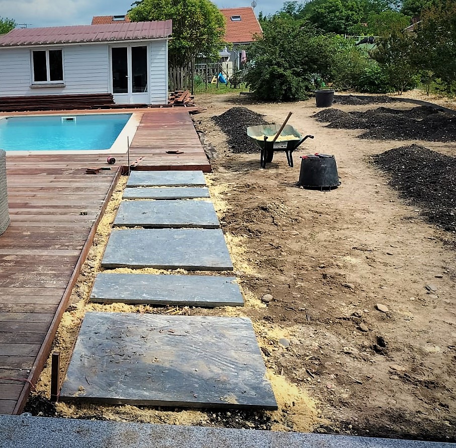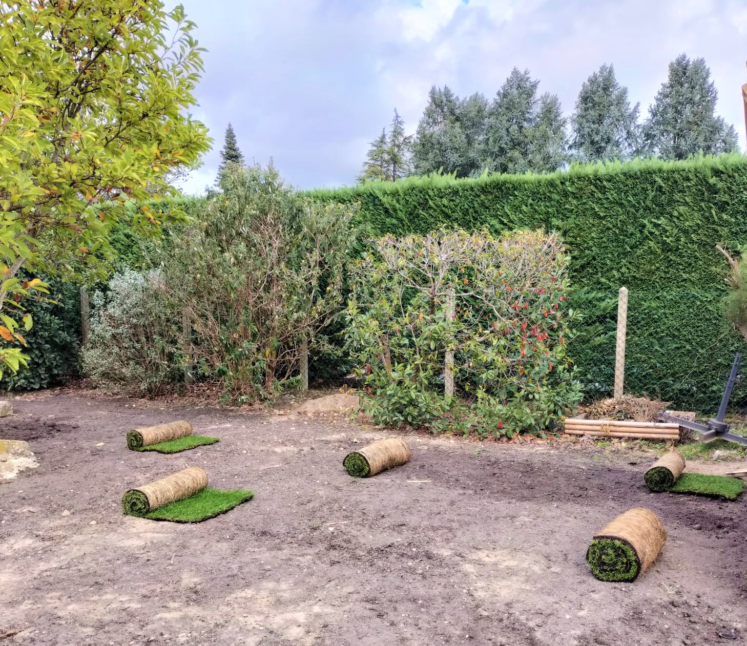 Préparation du terrain, pose de gazon, réalisation d’une allée